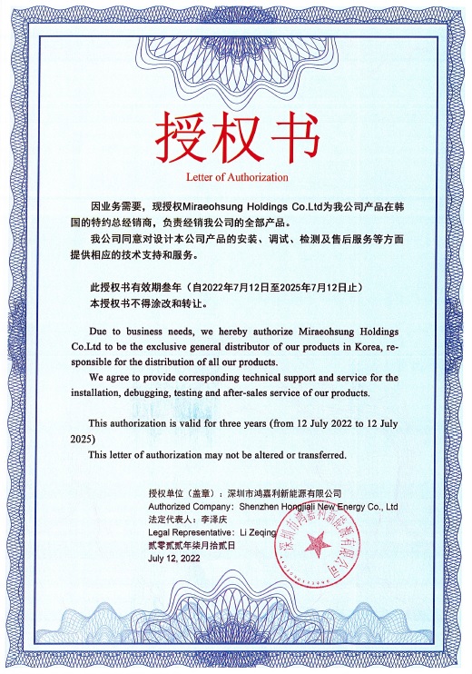 未来五星集团 电动汽车充电桩总代授权(深圳鸿嘉利新能源有限公司)