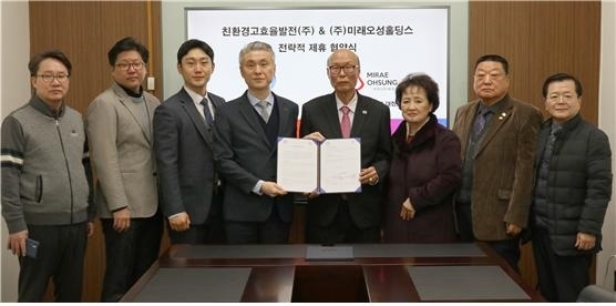 주식회사 미래오성홀딩스는 지난 14일 친환경고효율발전 주식회사와 전략적 제휴를 체결했다고 밝혔다. 전략적 제휴는 친환경고효율발전㈜의 신재생대체에너지 관련 기술과 사업권을 활용한 전방위적인 프로젝트에 대한 컨설팅, 협업 및 공동관리·운영의 주체로서 ㈜미래오성홀딩스를 핵심 파트너로 선정한다는 내용을 골자로 했다.