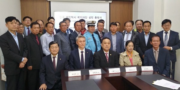 201910-21 ![]() ▲ 举行财团出台仪式后集体合照,右三为促进委员长徐石植(音),左二未来五星集团董事长金范彰(音)